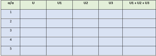 2ος ΚΑΝΟΝΑΣ του KIRCHHOFFΑ. ΘΕΩΡΗΤΙΚΟ ΜΕΡΟΣΤο αλγεβρικό άθροισμα των διαφορών δυναμικού κατά μήκος ενός κλειστού βρόγχου είναι ίσο με μηδένΔηλαδή U = U1 + U2 + U3 + ….Δηλαδή ο 2ος κανόνας του Kirchhoff μας λέει ότι το άθροισμα των τάσεων σε ένα ηλεκτρικό κύκλωμα είναι μηδένΑυτό συμβαίνει διότι συνολικά η τάση που παράγεται από τις πηγές ενός κυκλώματος παρέχονται στα στοιχεία του κυκλώματος Β. ΚΥΚΛΩΜΑ ΜΕΤΡΗΣΕΩΝΓ. ΠΟΡΕΙΑ ΕΡΓΑΣΙΑΣΠραγματοποιήστε το παραπάνω κύκλωμα χρησιμοποιώντας τρεις αντιστάσειςΜετρήστε, με τη χρήση βολτομέτρων, τις τάσεις στα άκρα της πηγής και των τριών αντιστάσεων.Πραγματοποιήστε πέντε (5) μετρήσεις αλλάζοντας κάθε φορά την τάση της πηγής.Συμπληρώστε τον πίνακα μετρήσεων.Καταγράψτε τα συμπεράσματα σας.Μπορείτε να πραγματοποιήσετε την εργαστηριακή άσκηση στο ακόλουθο εικονικό ηλεκτρολογικό εργαστήριοΔ. ΠΙΝΑΚΑΣ ΜΕΤΡΗΣΕΩΝΕ. ΣΥΜΠΕΡΑΣΜΑΤΑΤι παρατηρείτε σχετικά με τις τάσεις U, U1, U2 και U3; Επιβεβαιώνεται ο 2ος Κανόνας του Kirchoff;