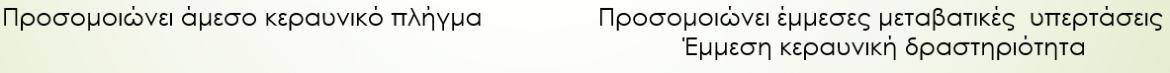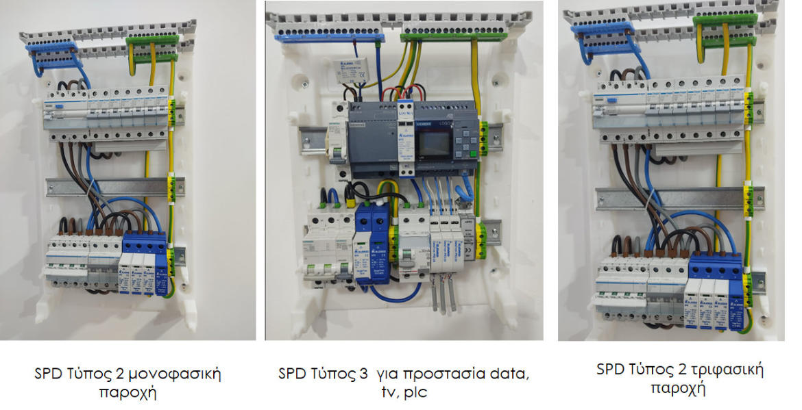 Απαγωγοί Κρουστικών Υπερτάσεων - Αντικεραυνικά (SPD)Είδη ΥπερτάσεωνΤι είναι οι κρουστικές υπερτάσεις Ρεύματος;Εμφανίζονται στην εγκατάσταση λόγω άμεσου ή έμμεσου κεραυνικού πλήγματοςΧαρακτηριστικά: μικρή διάρκεια (μs) και μεγάλη απόλυτη τιμή (kV)Είναι η κύρια αιτία βλαβών σε ηλεκτρονικές συσκευέςΠρότυπο εγκατάστασης IEC/HD 60364-4-44 : καθιστά υποχρεωτική την προστασία από υπερτάσεις σε ιδιωτικές κατοικίες, μικρές επιχειρήσεις και εμπορικά κτίρια.Κυματομορφές Κρουστικών Υπερτάσεων ΡεύματοςΚαταστροφές από ΚεραυνούςΓιατί όχι Σταθεροποιητές Τάσης;δεν προστατεύουν τις συσκευές από κρουστικές υπερτάσειςδεν προστατεύονται οι ίδιοι από κρουστικές υπερτάσειςΓιατί όχι αποσύνδεση των συσκευών;Δεν λύνεται το πρόβλημα καταστροφής τους από την εκδήλωση πυρκαγιάς που θα προκληθεί μέσω της ηλεκτρικής εγκατάστασης του κτιρίουΕίδη απαγωγών κρουστικών υπερτάσεωνΕκδόσεις απαγωγών κρουστικών υπερτάσεωνΑντικεραυνικά (SPD) Τύπου 1Kατάλληλος για προστασία από άμεσα κεραυνικά πλήγματα αφού έχουν ικανότητα απόσβεσης ως και 12,5kA Απαραίτητοι σε κάθε είδος εγκατάστασης που τροφοδοτείται από εναέριο δίκτυο ή διαθέτει εξωτερικό σύστημα αντικεραυνικής προστασίας. Συνδυάζονται πάντα με αντικεραυνικά Τύπου 2 για την προστασία των εγκαταστάσεων μέχρι τις συνδεδεμένες συσκευές.Αντικεραυνικά (SPD) Τύπου 2Αποτελούν τη βασική προστασία έναντι υπερτάσεων για όλες τις ηλεκτρικές εγκαταστάσεις. Αντικεραυνικά (SPD) Τύπου 1 + 2Αντικεραυνικά (SPD) Τύπου 3Χρησιμοποιούνται για επιμέρους προστασία ευαίσθητου ηλεκτρονικού εξοπλισμού. Συνιστώνται και εγκαθίστανται ως συμπλήρωμα των Τύπου 2. Τοποθετούνται κοντά στο υπό προστασία ευαίσθητο φορτίο, μετά τον απαγωγό Τύπου 2 και ξεχωριστά σε κάθε γραμμή φορτίουΑρχή λειτουργίας του αντικεραυνικού (SPD)Περιέχει ένα μη-γραμμικό στοιχείο προστασίας, που η ηλεκτρική του αντίσταση μεταβάλλεται σε συνάρτηση με την τάση που εφαρμόζεται στα άκρα του.Απαγωγοί υπερτάσεων με βαρίστορ (varistor)Βαρίστορ: ημιαγωγοί που μεταβάλλουν την αντίσταση τους σύμφωνα με την τάση που εφαρμόζεται στα άκρα τους.Όταν δεν υπάρχει κύμα μεταβατικής υπέρτασης η σύνθετη αντίσταση του βαρίστορ έχει πολύ υψηλή τιμή (συνήθως πάνω από 1 ΜΩ).Ότανόμωςεμφανίζεταιένακύμα,ησύνθετηαντίστασητουβαρίστορπέφτειακαριαίακάτωαπότο1Ωμέσασελίγανανοδευτερόλεπτα(ns),επιτρέπονταςτοεπερχόμενορεύμαναακολουθήσειτηδιαδρομή προς την γείωση της εγκατάστασης και όχι προς τις συσκευές που θέλουμε να προστατέψουμε.ΥπάρχειέναπολύμικρόρεύμαδιαρροήςκατάτηνκανονικήτουςλειτουργίακαιγιατονλόγοαυτόοιSPDsθαπρέπεινασυνδέονταιπριντωνRCDs,γιαναμηνδημιουργούνταιανεπιθύμητεςενεργοποιήσεις των RCDs.Βαρίστορ σε ΑντικεραυνικόΕπιλογής απαγωγών υπέρτασης σύμφωνα με τον τύπο τουςΣυνδεσμολογία SPD μέσα σε ηλεκτρικούς πίνακεςΣυνδεσμολογία SPD μέσα σε ηλεκτρικούς πίνακεςΗ εγκατάσταση απαγωγών μετά από ΔΔΡ είναι υποχρεωτική βάσει του ΕΛΟΤ 60364 μόνο για τη συνδεσμολογία CT 1 (4+0) για συστήματα ΤΤΠροστασία ασθενών ρευμάτων