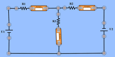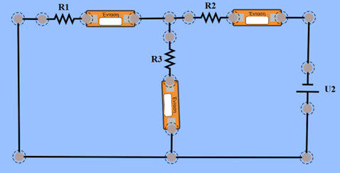 Μηδενίστε την πηγή τάσης U2 και καταγράψτε τις τιμές των εντάσεων Ι1΄, Ι2΄, Ι3΄ στις αντιστάσεις R1, R2, R3 αντίστοιχα.
