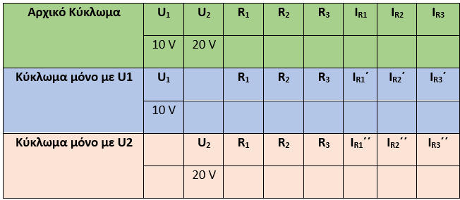 Αξιοποιώντας τα δεδομένα των μετρήσεων των προηγούμενων βημάτων, επαληθεύσατε την αρχή της επαλληλίας.