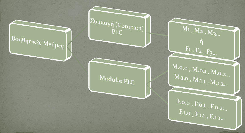 ΓίνεταικατανοητόότιστοPLCαποθηκεύονταιοικανόνεςτης γλώσσαςπρογραμματισμούπουθαχρησιμοποιήσουμε-π.χ. ότιηπύληΑΝDδίνειλογικό“1”στηνέξοδοότανόλεςοι είσοδοιείναιεπίσηςλογικό“1”.Αυτοίοικανόνεςθέλουμενα μπορούνναδιαγραφούναπότηνμνήμητουPLCήνα υπάρχουνγιαπάντα;Τοθέμαείναιότιανδιαγραφούν,δενθα μπορέσουμεναγράψουμεκάποιοπρόγραμμααφούθα λείπουν οι κανόνες.ΕπίσηςστοPLCαποθηκεύεταιτοπρόγραμμαμετοοποίο θέλουμεναελέγξουμεέναναυτοματισμό.Προφανώςαυτότο πρόγραμμαθαπρέπειναμπορούμενατοδιαγράφουμεκάθε φοράπουθέλουμενατοαλλάξουμεώστενααλλάξουμετη λειτουργία του αυτοματισμού. Άρασεποιαμνήμηπρέπειναγραφτούνοι“κανόνες”καισε ποια μνήμη το πρόγραμμα;