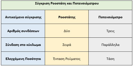 Όπως ίσως έχετε παρατηρήσει, ο ροοστάτης και το ποτενσιόμετρο αποτελούν ίδια συσκευή, δηλαδή μια μεταβλητή αντίσταση. Η διαφορά τους έγκειται στον τρόπο συνδεσμολογίας τους