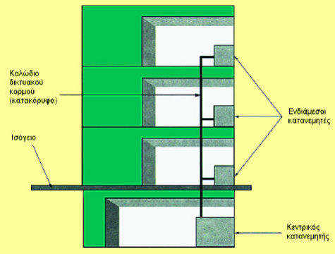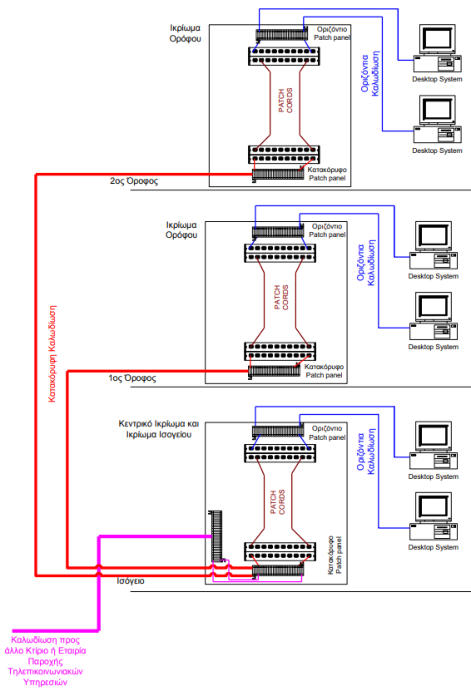 Μετονόροκατακόρυφηκαλωδίωσηνοείταιτοσύστημακαλωδίωσηςτοοποίο ενώνειτηςοριζόντιεςκαλωδιώσειςκαιαναφέρεταιστηδιασύνδεσημεταξύ διαφορετικών επιπέδων ή και ομάδων επιπέδων οριζόντιας καλωδίωσης