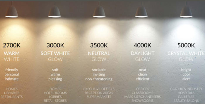 ΗκατανόησητηςθερμοκρασίαςΚέλβινδιευκολύνειτηνεπιλογήφωτισμούπου μαςδίνειτηνεμφάνισηκαιτηναίσθησηπουθέλουμεΣτοέναάκροτης κλίμακας,από2700Κέως3000Κ,τοπαραγόμενοφωςονομάζεται“ζεστόλευκό” καικυμαίνεταιαπόπορτοκαλίέωςκίτρινο-λευκόστηνεμφάνιση.Οι θερμοκρασίεςχρώματοςμεταξύ3100Κκαι4500Καναφέρονταιως“δροσερό λευκό”ή“φωτεινόλευκό”.Οιλαμπτήρεςσεαυτότοεύροςθαεκπέμπουνένα πιοουδέτερολευκόφωςκαιμπορείακόμηκαιναέχουνμιαελαφρώςμπλε απόχρωση.Πάνωαπό4500Κμαςφέρνειστηθερμοκρασίαφωτόςπουσυνήθως περιγράφουμε ως “φως της ημέρας