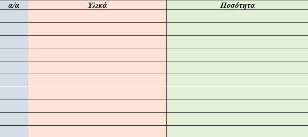 υπολογίσετε τα υλικά για την άσκηση. Υπενθυμίζουμε ότι θα χρειαστούν τα διπλάσια υλικά σε σχέση με την πρώτη άσκηση.
