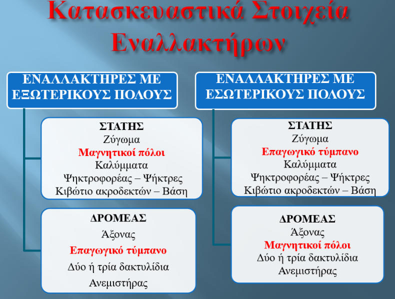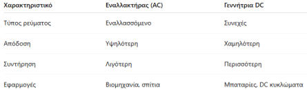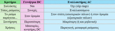Συνοπτικά Διαφορές μεταξύ Εναλλακτήρων και Γεννητριών Σ.Ρ.: