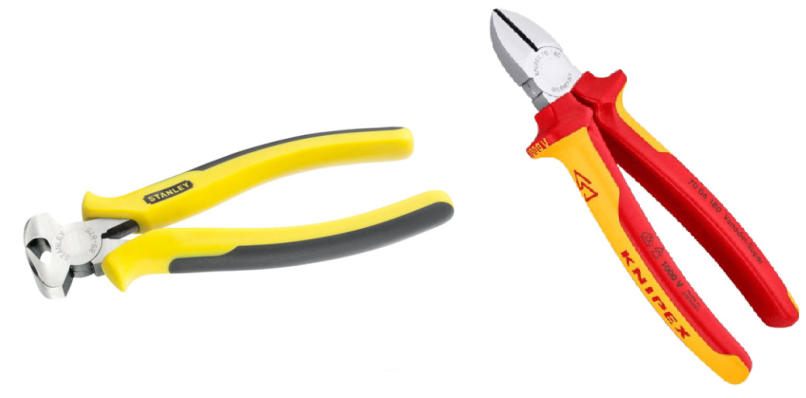 Ο εμπροσθοκόπτης (Σχ.6) και ο πλαγιοκόφτης (Σχ.7) που χρησιμοποιούνται για το κόψιμο συρμά-των ή αγωγών. Η επιλογή του κατάλληλου κόφτη εξαρτάται από το υλικό
