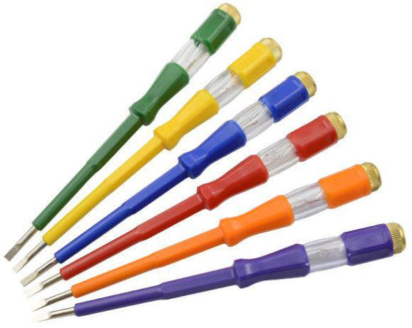 κατσαβιδιού και με το επάνω άκρο της λαβής του. Χρησιμοποιείται για τον έλεγχο ύπαρξης τάσης σε διάφορα ηλεκτρικά κυκλώματα. Η μύτη του κατσαβιδιού τοποθετείται