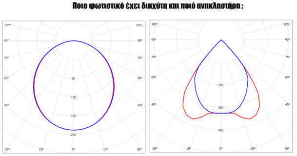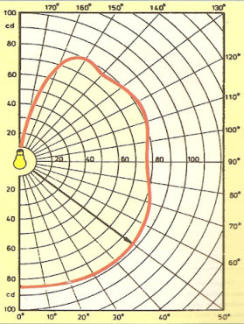 Στο παρακάτω διάγραμμα:μεταξύ ποιων γωνιών έχουμε καλή κατανομή φωτισμού;μεταξύ ποιων γωνιών έχουμε θαμβώσεις;δημιουργούνται hot - spots;