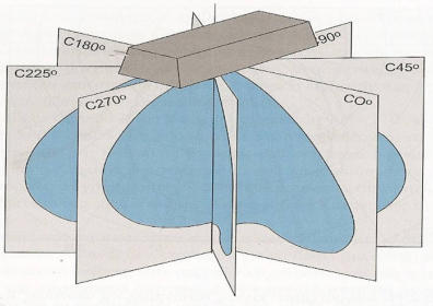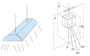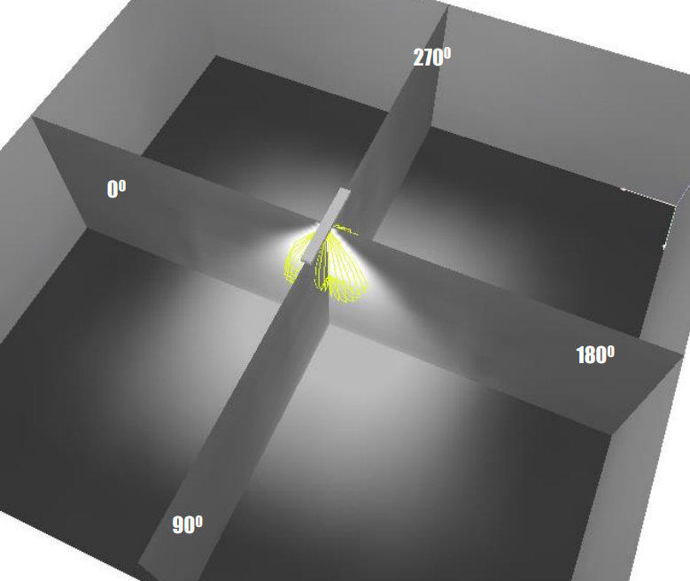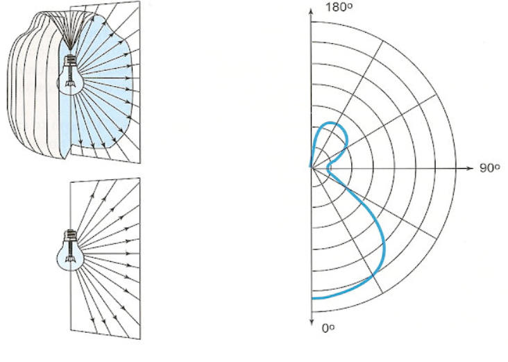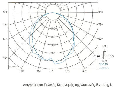 Στοπροηγούμενοπαράδειγματοπολικόδιάγραμμαδίνεταιμόνογιατοέναημιεπίπεδο, γιατίτοσυγκεκριμένοφωτιστικόπαρουσιάζεισυμμετρίαστηνκατανομήτηςφωτεινής έντασης, κάτι που δεν συμβαίνει όμως με πολλά φωτιστικά σώματα.Γιαπαράδειγμαπαίρνονταςτοφωτιστικόσώματουπαρακάτωπαραδείγματοςτοοποίο είναιδιαμήκες,παρατηρείταιότιηφωτεινήέντασηδενείναισυμμετρική.Γιατολόγοαυτό τοπολικόδιάγραμμααυτούτουφωτιστικούθασχεδιαστείσεδύοεπίπεδα.Βάσειτων κανονισμών της Διεθνούς επιτροπής φωτισμού CIE θα επιλεχθούν τα επίπεδα Α και ΒΓιαπαράδειγμαπαίρνονταςτοφωτιστικόσώματουπαρακάτωπαραδείγματοςτοοποίο είναιδιαμήκες,παρατηρείταιότιηφωτεινήέντασηδενείναισυμμετρική.Γιατολόγοαυτό τοπολικόδιάγραμμααυτούτουφωτιστικούθασχεδιαστείσεδύοεπίπεδα.Βάσειτων κανονισμών της Διεθνούς επιτροπής φωτισμού CIE θα επιλεχθούν τα επίπεδα Α και Β.ΤοτυποποιημένοεπίπεδοΑαντιστοιχείστοεπίπεδο90ο-270ο,ενώτοΒστοεπίπεδο0ο-180ο.Σταδύοαυτάεπίπεδασχεδιάζονταιταπολικάδιαγράμματακατανομήςτηςφωτεινής έντασης του φωτιστικού σώματος.Στηπερίπτωσηπουταφωτιστικάσώματαεμφανίζουνμεγαλύτερηασυμμετρίακαιτα επίπεδαΑκαιΒδενεπαρκούνγιαναδώσουνμιααντιπροσωπευτικήεικόναγιατηφωτεινή ένταση,τότεμπορείνασχεδιαστείκαιμιατρίτηκαμπύληστοπολικόδιάγραμμα.Η καμπύληαυτήθααναπαριστάτηφωτεινήέντασηγιατοκατακόρυφοεπίπεδο45ο-225ο, όπως φαίνεται στο κάτω σχήμα.