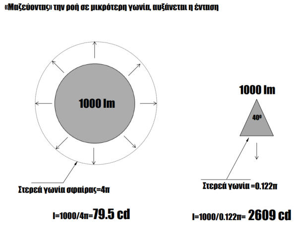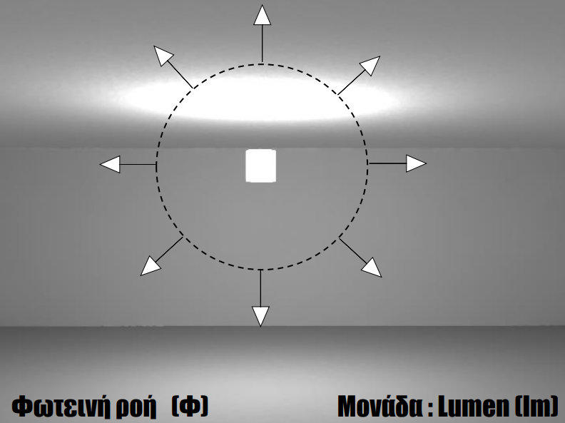 Η διαφορά της φωτεινής ροής Φ και της φωτεινής έντασης Ι είναι:ΗφωτεινήροήΦ(lummen)αναφέρεταισεέναλαμπτήρακαιείναιτοσυνολικόποσόορατής ακτινοβολίας που εκπέμπει ο λαμπτήρας προς οποιαδήποτε κατεύθυνση.ΗφωτεινήέντασηI(cd)αναφέρεταισεένανλαμπτήρακαιείναιτοσυνολικόποσόορατής ακτινοβολίας που εκπέμπει το φωτιστικό προς μια ορισμένη κατεύθυνση.