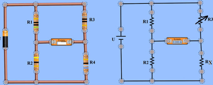 Γέφυρα WheatstoneΑ. ΘΕΩΡΗΤΙΚΟ ΜΕΡΟΣΗ γέφυρα Wheatstone είναι ηλεκτρικό κύκλωμα το οποίο μπορεί να χρησιμοποιηθεί για τη μέτρηση μιας άγνωστης αντίστασης κυκλώματος με τη μέθοδο της σύγκρισης. Χρησιμοποιείται κυρίως για εκπαιδευτικούς σκοπούς καθώς τη θέση της, για τον υπολογισμό της τιμής μιας αντίστασης, έχουν πάρει τα ψηφιακά ωμόμετρα. Β. ΚΥΚΛΩΜΑ ΜΕΤΡΗΣΕΩΝΓ. ΠΟΡΕΙΑ ΕΡΓΑΣΙΑΣΚαταρχάς, συνδέστε το κύκλωμα χρησιμοποιώντας δυο γνωστές αντιστάσεις R1 και R2, μια μεταβλητή R3 και μια άγνωστη R4 Είναι η γέφυρα σε ισορροπία ή όχι; Πως το καταλαβαίνετε Αλλάξτε την τιμή της μεταβλητής αντίστασης R3 ώστε να ισορροπήσει η γέφυρα. Ποια τιμή δώσατε στην R3;Συμπληρώστε τον πίνακα μετρήσεωνΜπορείτε να πραγματοποιήσετε την εργαστηριακή άσκηση στο ακόλουθο εικονικό ηλεκτρολογικό εργαστήριοΔ. ΠΙΝΑΚΑΣ ΜΕΤΡΗΣΕΩΝΕ. ΣΥΜΠΕΡΑΣΜΑΤΑΕρώτηση: Τι παρατηρείτε με τα γινόμενα R1*RΧ και R2*R3 όταν η γέφυρα ισορροπεί; Άρα ποια σχέση πρέπει να ισχύει μεταξύ των τεσσάρων αντιστάσεων ώστε η γέφυρα να ισορροπεί;Ερώτηση: Ποια είναι η συνολική αντίσταση του κυκλώματος;Ερώτηση: Ποιες αντιστάσεις διαρρέονται από το ίδιο ρεύμα;Ερώτηση: Επηρεάζεται η ισορροπία της γέφυρας από την τιμή της πηγής τάσης;Ερώτηση: Ενώ η γέφυρα βρίσκεται σε ισορροπία, αντιμεταθέστε (αλλάξτε τη θέση) μεταξύ αμπερομέτρου και πηγής τάσης. Επηρεάστηκε η ισορροπία της γέφυρας;Ερώτηση: θα μπορούσε το κύκλωμα της γέφυρας Wheatstone να λειτουργήσει ως μέθοδος υπολογισμού της τιμής αντιστάσεων; Με ποιον τρόπο;