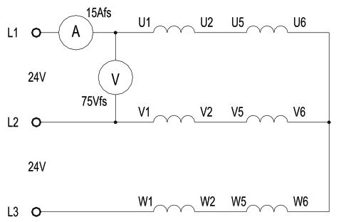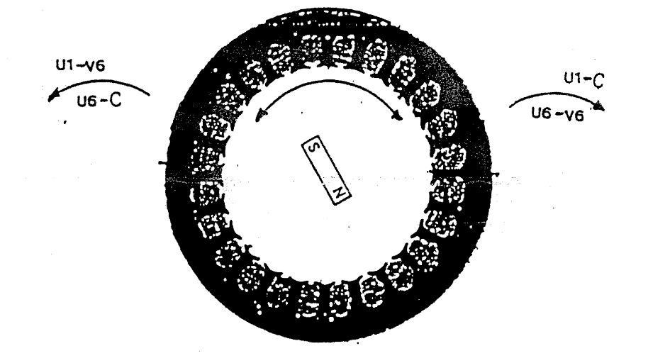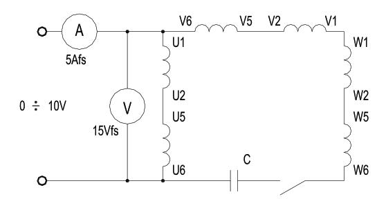 Μελέτη Στρεφόμενου Μαγνητικού ΠεδίουΕξαρτήματα1 στάτης μηχανής εναλλασσόμενου ρεύματος1 μαγνητικός ανιχνευτής1 DL 10281 Δομοστοιχείο τροφοδοσίας 1 DL 10282N Δομοστοιχείο μέτρησης 1 DL 10283 Φορτία και ρεοστάτεςΠΕΙΡΑΜΑ 1: ΤΡΙΦΑΣΙΚΟ ΣΤΡΕΦΟΜΕΝΟ ΠΕΔΙΟΗλεκτρικό διάγραμμαΤοπογραφικό διάγραμμαΔιαδικασίαΚατασκευάστετοκύκλωμαπουφαίνεταιστοπροηγούμενοτοπογραφικόδιάγραμμαχρησιμοποιώνταςμόνοτονστάτητηςμηχανής εναλλασσόμενου ρεύματος, χωρίς δρομέα (ηλεκτρικό διάγραμμα).ΡυθμίστετοδομοστοιχείοτροφοδοσίαςDL10281γιασταθερήεναλλασσόμενητάση24V/15A:επιλογέας«a0b»στηθέση«a»καιδιακόπτης L1/L2/L3 στη θέση «0».ΧρησιμοποιήστετοδομοστοιχείομέτρησηςDL10282Nκαιδιαβάστετιςτιμέςτουβολτόμετρουκαιτουαμπερόμετρουγιαμετρήσεις εναλλασσόμενου ρεύματος στην πρώτη διάταξη. Ενεργοποιήστετοδομοστοιχείοτροφοδοσίαςκαιτροφοδοτήστετιςπεριελίξειςτουστάτηπουσυνδέονταιμεσύνδεσηαστέραρυθμίζοντας τον διακόπτη L1/L2/L3 στη θέση «1».Συνδέστετονμαγνητικόανιχνευτήσεαντιστοιχίαμετονάξονατηςμηχανήςκαιεξερευνήστετομαγνητικόπεδίο.Οαναρτήραςπρέπεινα μένει παράλληλος στο στήριγμα, με τη βοήθεια κολλητικής ταινίας ή κάτι παρόμοιου, για να αποφύγετε τη μετακίνησή του.Ο μικρός μαγνήτης διεγείρεται σε μια συγκεκριμένη φορά περιστροφής και συνεχίζει να περιστρέφεται.Απενεργοποιήστε την τροφοδοσία της περιέλιξης και ανταλλάξτε δύο φάσεις μεταξύ τους, για παράδειγμα το L2 με το L3.Τροφοδοτήστε ξανά τις περιελίξεις του στάτη: ο μικρός μαγνήτης στρέφεται τώρα προς την αντίθετη διεύθυνση από την προηγούμενη. ΠΕΙΡΑΜΑ Αρ.2: ΜΟΝΟΦΑΣΙΚΟ ΣΤΡΕΦΟΜΕΝΟ ΠΕΔΙΟΗλεκτρικό διάγραμμαΤοπογραφικό διάγραμμαΚατασκευάστετοκύκλωμαπουφαίνεταιστοπροηγούμενοτοπογραφικόδιάγραμμαχρησιμοποιώνταςμόνοτονστάτητηςμηχανής εναλλασσόμενου ρεύματος, χωρίς δρομέα (ηλεκτρικό διάγραμμα).ΡυθμίστετοδομοστοιχείοτροφοδοσίαςDL10281γιαμονοφασικήμεταβαλλόμενηεναλλασσόμενητάση0÷10V/12A:επιλογέας«c0d»στη θέση «d» και κομβίο ελέγχου στο 0%.ΧρησιμοποιήστετοδομοστοιχείομέτρησηςDL10282Nκαιδιαβάστετιςτιμέςτουβολτόμετρουκαιτουαμπερόμετρουγιαμετρήσεις εναλλασσόμενου ρεύματος στην πρώτη διάταξη. ΡυθμίστετονβηματικόσύνδεσμοτουχωρητικούφορτίουCτουδομοστοιχείουDL10283στηθέση«0»(μέγιστηαριστερόστροφη περιστροφή).Ενεργοποιήστε το δομοστοιχείο τροφοδοσίας και ρυθμίστε την τιμή του ρεύματος στην κύρια περιέλιξη U1-U6 περίπου στο 5A.Συνδέστε τον μαγνητικό ανιχνευτή σε αντιστοιχία με τον άξονα της μηχανής και εξερευνήστε το μαγνητικό πεδίο. Οαναρτήραςπρέπειναμένειπαράλληλοςστοστήριγμα,μετηβοήθειακολλητικήςταινίαςήκάτιπαρόμοιου,γιανααποφύγετετη μετακίνησή του. Ο μικρός μαγνήτης ταλαντεύεται αλλά δεν περιστρέφεται. ΣυνδέστετώρατηβοηθητικήφάσησυνδέονταςσεαλληλουχίατιςχωρητικότητεςC1=80µF(σύνδεσμοςστο«1»),C12=160µF(σύνδεσμος στο«1-2»)καισυνεπώςC123=240µF(σύνδεσμοςστο«1-2-3»):ομικρόςμαγνήτηςδιεγείρεταικαιστρέφεταισεσυγκεκριμένηφορά περιστροφής και συνεχίζει να περιστρέφεται ακόμη και αν η βοηθητική φάση απενεργοποιηθεί. Αφού επαναφέρετε το ρεύμα, ανταλλάξτε τη σύνδεση της βοηθητικής φάσης (συνδέστε το V6 στο U6 και το C στο U1). Επαναλάβετετιςπροηγούμενεςενέργειεςκαιεπαληθεύστεότιομικρόςμαγνήτηςστρέφεταιτώραπροςτηναντίθετηδιεύθυνσηαπότην προηγούμενη.