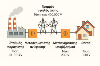 Ορόλοςτωνμετασχηματιστώνστοδίκτυομεταφοράς ηλεκτρικήςενέργειαςείναικαθοριστικόςγιατην αποδοτική και ασφαλή λειτουργία του.Τι κάνουν οι μετασχηματιστές στο δίκτυο:Ανυψώνουντηντάσησταεργοστάσιαπαραγωγής ηλεκτρικής ενέργειας:Η ηλεκτρική ενέργεια παράγεται με τάση π.χ. 10–30 kV.Μετασχηματιστέςανυψώνουντηντάσησεπολύυψηλά επίπεδα (μέχρι και 400.000 V).Αυτόγίνεταιγιαναμειωθούνοιαπώλειεςενέργειαςκατά τη μεταφορά σε μεγάλες αποστάσεις.Υποβιβάζουν την τάση κοντά στα σπίτια και τις πόλεις:Πρινφτάσειηενέργειαστονκαταναλωτή,οι μετασχηματιστέςυποβιβάζουντηντάσηστα230V (οικιακή χρήση) ή 400 V (βιομηχανική χρήση).Αυτόγίνεταιγιαασφάλειακαισυμβατότηταμετις ηλεκτρικές συσκευές.Τι πρόβλημα θα υπήρχε χωρίς μετασχηματιστές;Ημεταφοράσεχαμηλήτάσηθαείχετεράστιεςαπώλειες ενέργειας (ως θερμότητα).Τακαλώδιαθαέπρεπεναείναιτεράστιασεπάχος,κάτι που είναι ανέφικτο και πολύ ακριβό.Ηηλεκτρικήενέργειαδενθαμπορούσεναμεταφερθείσε μεγάλες αποστάσεις.Ηπαροχήρεύματοςστασπίτιαθαήτανεπικίνδυνηή ασταθής.Συμπέρασμα:Οιμετασχηματιστέςείναιαπαραίτητοιγιατην αποτελεσματική,ασφαλήκαιοικονομικήμεταφορά ηλεκτρικήςενέργειαςαπόταεργοστάσιαπαραγωγήςέως τον τελικό καταναλωτή.