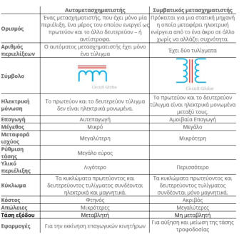 Διαφορές Αυτοματασχηματιστή με Συμβατικό Μετασχηματιστή
