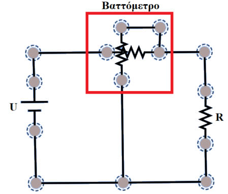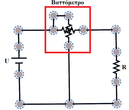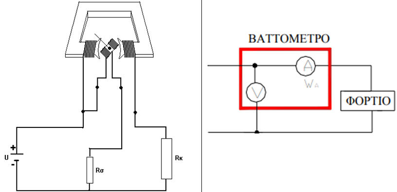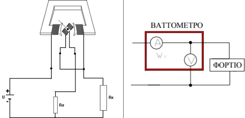 Υπολογισμός Ηλεκτρικής Ισχύος με ΒαττόμετροΑ. ΘΕΩΡΗΤΙΚΟ ΜΕΡΟΣΜέτρηση ισχύος ΣΡ με βαττόμετροΤο βαττόμετρο αποτελείται από δύο πηνία ένα σταθερό και ένα στρεπτό . Το στρεπτό τοποθετείται μέσα στο σταθερό .Το σταθερό πηνίο τοποθετείται σε σειρά με το κύκλωμα ώστε από αυτό να περνάει η ένταση του κυκλώματος . Άρα η ένταση του μαγνητικού πεδίου που δημιουργείται στο σταθερό πηνίο εξαρτάται από την ένταση του κυκλώματος . Το στρεπτό πηνίο τοποθετείται παράλληλα στο κύκλωμα ώστε σε αυτό να εφαρμόζεται η τάση του κυκλώματος . Άρα η ένταση του μαγνητικού πεδίου που δημιουργείται στο στρεπτό πηνίο εξαρτάται από την τάση του κυκλώματος . Μεταξύ των δύο πηνίων αναπτύσσεται μια μαγνητική δύναμη η οποία στρέφει το στρεπτό πηνίο άρα και την βελόνα που έχει προσαρμοστεί σε αυτό με αποτέλεσμα να μετράμε την ισχύ του κυκλώματος . Όσο μεγαλύτερη είναι η τάση ή η έντσαη του κυκλώματος τόσο μεγαλύτερη είναι η δύναμη που αναπτύσσεται μεταξύ των δύο πηνίων άρα η βελόνα μας δείχνει μεγαλύτερη τιμή . Για λόγους προστασίας το πηνίου τάσεως συνδέεται σε σειρά με μια αντίσταση Rσ Το βαττόμετρο είναι δυνατον να συνδεθεί με δύο τρόπους στο κύκλωμα .α τρόποςΣε αυτή την περίπτωση υπολογίζουμε και τις θερμικές απώλειες Joule του πηνίου εντάσεωςΣημείωση : H συνδεσμολογία αυτή ενδείκνυται για περιπτώσεις που η ισχύς παρέχεται υπό υψηλήτάση και μικρή ένταση.β τρόποςΣε αυτή την περίπτωση υπολογίζουμε και τις θερμικές απώλειες Joule του πηνίου τάσεως .Σημείωση : H συνδεσμολογία ενδείκνυται για περιπτώσεις κατά τις οποίες η ισχύς παρέχεται υπό μικρή τάση και μεγάλη ένταση.ΡΥΘΜΙΣΕΙΣ ΠΡΙΝ ΤΗ ΜΕΤΡΗΣΗ α. Σε περίπτωση που χρησιμοποιούμε αναλογικό βαττόμετροΣτααναλογικάβαττόμετραθαπρέπειναεπιλέξουμεδυοδιαφορετικέςπεριοχέςμέτρησης,μίαγιατοαμπερομετρικοτύλιγμακαιμίαγιατο βολτομετρικό τύλιγμα.Σεκάθεπερίπτωσηθαπρέπειναµηνυπερβαίνουµετορεύµαπουδιέρχεταιαπότοβαττόµετροαλλάούτεκαιτηντάσητουεφαρμόζεταιστο βαττόμετρο. Αυτό θα είναι ο γνώµονας επιλογής των περιοχών μέτρησης.Θυμηθείτεότιτοίδιοακριβώςκάναμεστοαμπερόμετροκαιστοβολτόμετροότανεπιλέγαμετηνκατάλληληπεριοχήμέτρησης.Απλάστοβαττόμετρο θα πρέπει να επιλέγουμε κατάλληλα δύο περιοχές μέτρησης αντί για μίαΤο γινόμενο των δυο επιμέρους περιοχών μέτρησης μας δείχνουν την περιοχή μέτρησης του βαττομέτρουΒ. ΚΥΚΛΩΜΑ ΜΕΤΡΗΣΕΩΝΓ. ΠΟΡΕΙΑ ΕΡΓΑΣΙΑΣ1. Πραγματοποιήστε το 1ο κύκλωμα και εφαρμόστε τάση2. Συμπληρώστε την τιμή του πηνίου τάσης και έντασης που επιλέξατε και υπολογίστε τον συντελεστή3. Σημειώστε την ένδειξη του οργάνου4. Υπολογίστε την ισχύ5. Χωρίς να αλλάξετε τιμή στην τάση πραγματοποιήστε το 2ο κύκλωμα και επαναλάβετε τα παραπάνω βήματα6. Συμπληρώστε τον πίνακα παίρνοντας συνολικά πέντε διαφορετικές τάσειςΜπορείτε να πραγματοποιήσετε την εργαστηριακή άσκηση στο ακόλουθο εικονικό ηλεκτρολογικό εργαστήριοΔ. ΠΙΝΑΚΑΣ ΜΕΤΡΗΣΕΩΝΕ. ΣΥΜΠΕΡΑΣΜΑΤΑΕρώτηση: Τα αποτελέσματα του 1ου ή του 2ου τρόπου συνδεσμολογίας πιστεύετε ότι είναι περισσότερο ακριβείς;