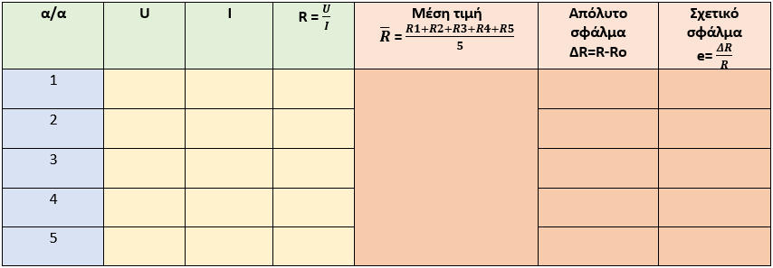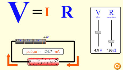 Νόμος του OhmΑ. ΘΕΩΡΗΤΙΚΟ ΜΕΡΟΣΟ Georg Simon Ohm το 1825 αποδεικνύει ότι όλα τα υλικά σώματα, ακόμα και τα καλύτερα μέταλλα, εμφανίζουν αντίσταση στο ηλεκτρικό ρεύμα.Ο Ωμ διατύπωσε μια σχέση που συνδέει την τάση του ρεύματος, την ένταση και την αντίσταση ενός κυκλώματος:Ι= U/RΌπου:Ι: Ένταση του ρεύματος σε Αμπέρ (Α)U: Τάση σε βολτ (V)R: Αντίσταση σε Ωμ (Ω)Οι αντιστάσεις που διατηρούνται σταθερές καθώς μεταβάλλεται η τάση τους ονομάζονται ωμικές αντιστάσεις. Σε αυτές, η ένταση του ηλεκτρικού ρεύματος είναι ανάλογη της τάσης που επικρατεί στα άκρα τουςΔηλαδή στις ωμικές αντιστάσεις: Όσο αυξάνεται η τάση, αυξάνεται η έντασηΌσο μειώνεται η τάση, μειώνεται η έντασηΜορφές του Νόμου του ΩμΜνημονικός Κανόνας του Νόμου του OHMΒ. ΚΥΚΛΩΜΑ ΜΕΤΡΗΣΕΩΝΓ. ΠΟΡΕΙΑ ΕΡΓΑΣΙΑΣΣυνδεσμολογήστε το κύκλωμα της άσκησηςΤροφοδοτείστε με τάση το κύκλωμαΜετρήστε την τάση και την ένταση με τα κατάλληλα όργανα και καταγράψτε τις τιμές στον πίνακαΑλλάξτε την τιμή της τάσης και επαναλάβετε τις μετρήσειςΓια κάθε μέτρηση τάσης και έντασης υπολογίστε την τιμή της αντίστασηςΜπορείτε να πραγματοποιήσετε την εργαστηριακή άσκηση στο ακόλουθο εικονικό ηλεκτρολογικό εργαστήριοΔ. ΠΙΝΑΚΑΣ ΜΕΤΡΗΣΕΩΝΕ. ΣΥΜΠΕΡΑΣΜΑΤΑΕρώτηση: Ποια από τις πέντε τιμές της αντίστασης που υπολογίσατε θεωρείτε ότι είναι η περισσότερο ακριβής; Για ποιον λόγο; Ερώτηση: Τι παρατηρείτε με την τιμή της αντίστασης R, όταν μεταβάλλεται η τάση U και η ένταση I στο κύκλωμα;Δραστηριότητα: Μεταφέρετε τις τιμές τάσης και έντασης που έχετε μετρήσει και χαράξτε την γραφική παράσταση I=f(U)Ερώτηση: Τι μορφή έχει η γραφική παράσταση I=f (U) και γιατί;Ερώτηση: Η αντίσταση που χρησιμοποιήσατε είναι γραμμική ή μη-γραμμική; Πως το καταλάβατε; Ερώτηση: τα σημεία της γραφικής παράσταση ταυτίζονται με την γραφική παράσταση; Αν όχι, που οφείλεται αυτό;