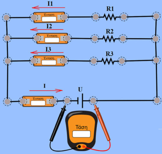Θαπρέπειναθυμόμαστετοντρόποσύνδεσηςτων βολτομέτρων και των αμπερομέτρων:Ταβολτόμετρασυνδέονταιπαράλληλαμετομέροςτου κυκλώματος του οποίου θέλουμε να μετρήσουμε την τάσηΤααμπερόμετρασυνδέονταισεσειράμετομέροςτου κυκλώματοςτουοποίουθέλουμεναμετρήσουμετηνένταση του ρεύματος