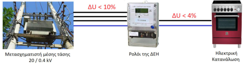 ΗΔΕΗμετέβαλλετηνονομαστικήτιμήτηςτάσηςτωνδικτύων διανομής(χαμηλήςτάσης)απότιςτιμές220/380Vμεόρια διακύμανσης ±5% ως ακολούθως:•Από1.1.1996έως31.12.2003σε230/400Vμεόριαδιακύμανσης-10%, +6%.•Από1.1.2004καιεφεξήςσε230/400Vμεόριαδιακύμανσης±10% (207Vέως253Vγιατομονοφασικόκαι360Vέως440Vγιατο τριφασικό).
