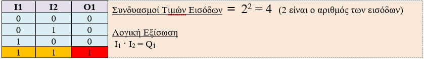 Αριθμός συνδυασμών Εισόδων = 2κ, όπου κ : το πλήθος των Εισόδων