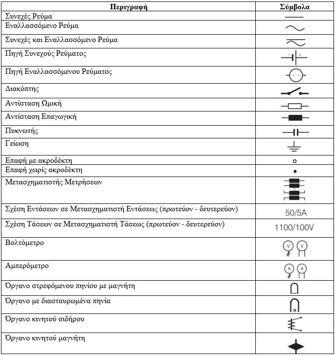 Σύμβολα Ηλεκτρικών ΜετρήσεωνΑ. ΘΕΩΡΗΤΙΚΟ ΜΕΡΟΣ.Β. ΠΟΡΕΙΑ ΕΡΓΑΣΙΑΣΠεριγράψτε τα στοιχεία των ηλεκτρικών οργάνων που χρησιμοποιείτε στο εργαστήριο με βάση τους συμβολισμούς που έχουν επάνω στην κλίμακα τουςΚαταγράψτε αυτά τα στοιχεία στον πίνακα που ακολουθείΓ. ΠΙΝΑΚΑΣ ΜΕΤΡΗΣΕΩΝΔ. ΣΥΜΠΕΡΑΣΜΑΤΑ