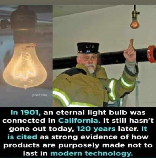 Ηλάμπατηςπαρακάτωφωτογραφίας,λειτουργείακατάπαυστααπότο1901,σε ένανπυροσβεστικόσταθμόστηνΚαλιφόρνια!Ησυγκεκριμένηλάμπαδενσβήνει ποτέ εκτός βέβαια από της περιπτώσεις διακοπής ρεύματος.