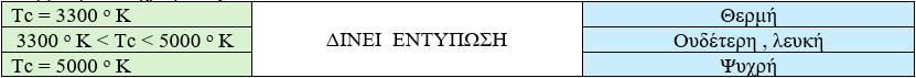 Ποιά λάμπα να διαλέξω με βάση τη θερμοκρασία χρώματος?Θερμοκρασία χρώματος είναι μια μέτρηση της ‘’ζεστασιάς’’ ή της ‘’ψυχρότητας’’ μιας πηγής φωτός. Μια μέτρηση της απόχρωσης του λευκού φωτός.Έτσι κατά σύμβαση τα κίτρινα - κόκκινα χρώματα θεωρούνται θερμά (όπως οι φλόγες μιας φωτιάς). Ενώ τα μπλέ - μωβ - πράσινα θεωρούνται ψυχρά (όπως το φως από έναν νεφελώδη ουρανό). Οι υψηλότερες θερμοκρασίες Kelvin ( 5000° - 6500° K ) είναι αυτό που θεωρούμε ψυχρό και χαμηλότερες θερμοκρασίες χρώματος ( 2700° - 3000° K ) θεωρούνται θερμό.Τα τελευταία χρόνια χρησιμοποιείται όλο και συχνότερα το ενδιάμεσο χρώμα φωτός ( 4000° - 5000° Κ ) που λέγεται φως ημέρας ή λευκό ημέρας και έχει πολλές χρήσεις σε γραφεία ως πιο ξεκούραστο, αλλά και σε καταστήματα με ρούχα που το προτιμούν έναντι του θερμού που χρησιμοποιούνταν πιο παλιά γιατί δεν αλλοιώνει τα χρώματα.Με τη σειρά του το θερμό φως προτιμάται για τους χώρους διαμονής γιατί είναι ήπιο και προσθέτει ζεστασιά στο χώρο και χαλάρωση στους διαμένοντες. Μάλιστα στην προσπάθεια να μοιάζουν με λαμπτήρες πυρακτώσεως έχουν βγει τα LED filament που μερικά από αυτά κυκλοφορούν σε πολύ χαμηλά Kelvin 2200 - 2700Κ δηλαδή εκπέμπουν πολύ θερμό φως.Και τέλος το ψυχρό φως το οποίο χρησιμοποιείται οπού θέλουμε πολύ καλό και έντονο φωτισμό. Παράγει υψηλότερη αντίθεση από το θερμό φως και χρησιμοποιείται σε χώρους εργασίας ,σε δημόσιους χώρους σε χωλ, αίθουσες αναμονής, νοσοκομεία , εργοστάσια κτλ.