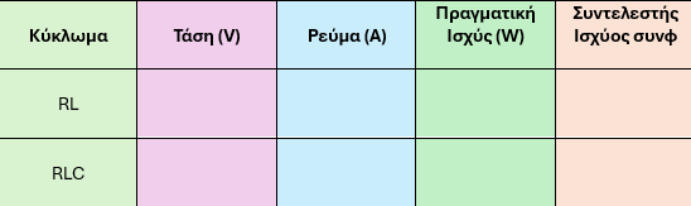 Βελτίωση του Συντελεστή Ισχύος (συν φ)Προαπαιτούμενες ΓνώσειςΒασικές έννοιες εναλλασσόμενου ρεύματοςΝόμος του Ohm σε AC κυκλώματαΈννοια φάσης και διανυσματική αναπαράσταση μεγεθώνΥλικά και ΌργαναΠηγή εναλλασσόμενης τάσηςΑντίσταση (R)Πηνίο (L)Πυκνωτής (C)ΠολύμετροΚαλώδια σύνδεσηςΔιερευνητικά Ερωτήματα Τι συμβαίνει στην κατανάλωση ρεύματος όταν στο κύκλωμα προστίθεται πηνίο;Γιατί ενώ αυξάνεται το ρεύμα, η ενεργός ισχύς δεν αυξάνεται αντίστοιχα;Πώς μπορεί να μειωθεί η άεργη ισχύς χωρίς να αλλάξει το φορτίο;Οι μαθητές καλούνται να διατυπώσουν αρχικές υποθέσεις.Πειραματική ΔιαδικασίαΦάση Α: Μελέτη κυκλώματος R–LΣυνδέστε την αντίσταση και το πηνίο σε σειρά με την πηγή AC.Μετρήστε τάση, ρεύμα και ισχύ.Υπολογίστε τον συντελεστή ισχύος.Καταγράψτε παρατηρήσεις.Φάση Β: Προσθήκη Πυκνωτή (Αντιστάθμιση)Συνδέστε πυκνωτή παράλληλα στο φορτίο.Επαναλάβετε τις μετρήσεις.Συγκρίνετε τις τιμές πριν και μετά την αντιστάθμιση.Φύλλο Καταγραφής ΜετρήσεωνΑνάλυση – ΣυμπεράσματαΠώς μεταβλήθηκε ο συντελεστής ισχύος με την προσθήκη του πυκνωτή;…………………………………………………………………………………………………………………………………………………………………………………………………………..…………………………………………………………………………………………………………………………………………………………………………………………………………..Να συγκρίνετε τις μετρήσεις στα τρία όργανα πριν και μετά την αντιστάθμιση. Ποια από αυτά δείχνουν το ίδιο και ποια όχι;Τεκμηριώστε την απάντησή σας.…………………………………………………………………………………………………………………………………………………………………………………………………………..…………………………………………………………………………………………………………………………………………………………………………………………………………..Ποια ήταν η επίδραση στο ρεύμα γραμμής;…………………………………………………………………………………………………………………………………………………………………………………………………………..…………………………………………………………………………………………………………………………………………………………………………………………………………..Επιβεβαιώθηκαν οι αρχικές υποθέσεις;…………………………………………………………………………………………………………………………………………………………………………………………………………..…………………………………………………………………………………………………………………………………………………………………………………………………………..Επέκταση – ΑναστοχασμόςΠού συναντάμε στην πράξη χαμηλό συντελεστή ισχύος;…………………………………………………………………………………………………………………………………………………………………………………………………………..…………………………………………………………………………………………………………………………………………………………………………………………………………..Γιατί οι βιομηχανίες χρησιμοποιούν συστοιχίες πυκνωτών;…………………………………………………………………………………………………………………………………………………………………………………………………………..…………………………………………………………………………………………………………………………………………………………………………………………………………..Ποιες είναι οι οικονομικές και ενεργειακές συνέπειες;…………………………………………………………………………………………………………………………………………………………………………………………………………..…………………………………………………………………………………………………………………………………………………………………………………………………………..Γιατί σε ορισμένους καταναλωτές εμφανίζονται άεργα φορτία;……………